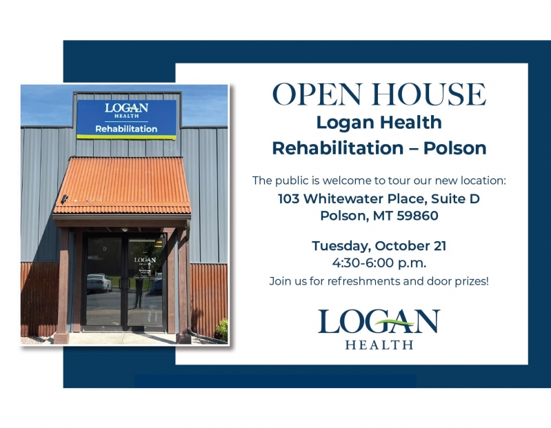 Logan Health Rehabilitation Polson invites the community to an OPEN HOUSE to celebrate their new location at 103 Whitewater Place, Suite D, Polson, MT.